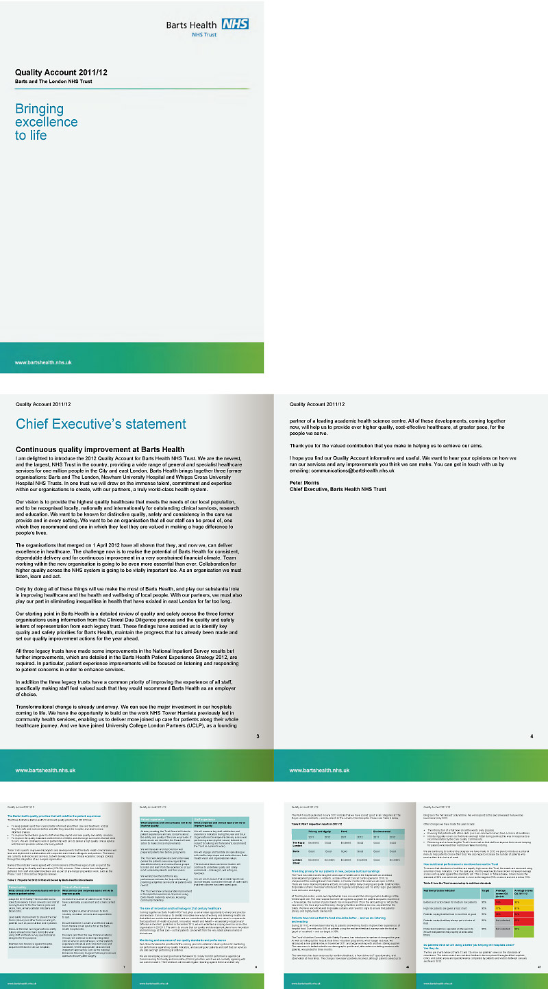 Barts Health NHS Trust commissioned us to help with two major documents for 2012 – the Annual Report and Quality Account, which were both produced in Microsoft Word.