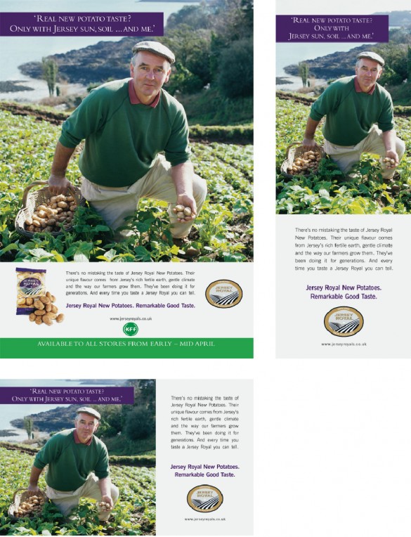 Jersey Royals are the UK’s favourite new potato and gobbled up by gourmets who enjoy their unique flavour and texture. Lindsay was commissioned to design and produce consumer ads, trade ads and point of sale material to coincide with their short on-sale season. The focus of this campaign was on the unique heritage of these special little spuds. The images were shot by celebrated photographer David Montgomery, who is more usually associated with portraits, rather than potatoes (eg the Queen, Andy Warhol, Jimi Hendrix and so on…).